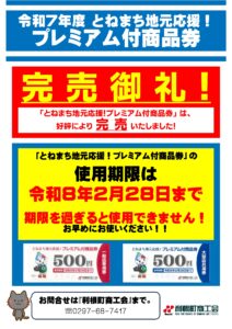 📢 【完売御礼】令和7年度「とねまち地元応援!プレミアム付商品券」完全完売のお知らせ新着!!